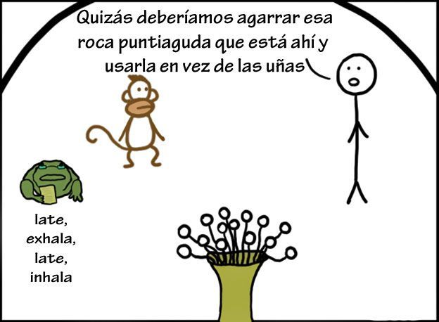 Los homínidos que tenían esa capa veían rocas y pensaban en herramientas (pensar), miraban a sus presas y entendían su comportamiento (planear), notaban que había otros como ellos y pensaban que podían trabajar juntos (cooperar).