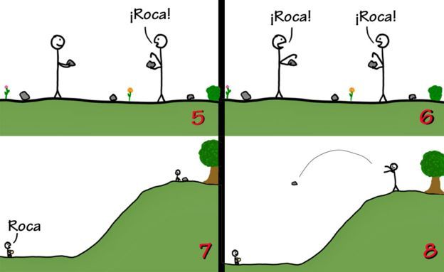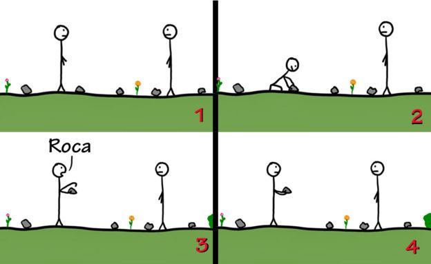"Imagínate que alguien de una tribu que cuenta con el lenguaje pisa una planta y tiene una reacción brutal. Se lo cuenta a los demás y ellos a otros , y pasa de generación en generación. Ahora piensa en todas las lecciones que todos van aprendiendo y se va volviendo una montaña de conocimiento", ilustra.
