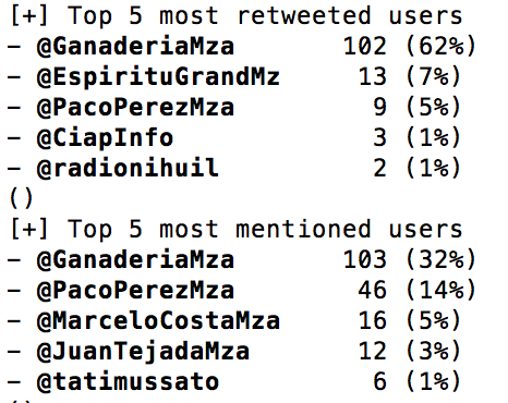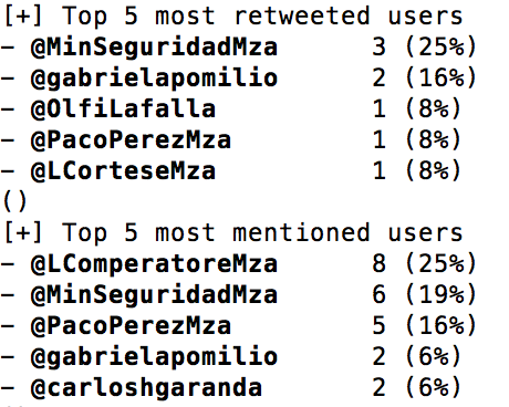 Del total de tuits emitidos por la cuenta, estos fueron los usuarios más mencionados: @danielscioli, @cfkargentina, @parlasurmendoza, @JLAlvarezMza, @totobares.