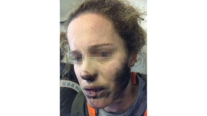 "Había chispas y un poco de fuego", agregó la mujer en su testimonio. Las imágenes muestran que la víctima quedó con la cara y el cuello ennegrecidos y con ampollas en las manos.