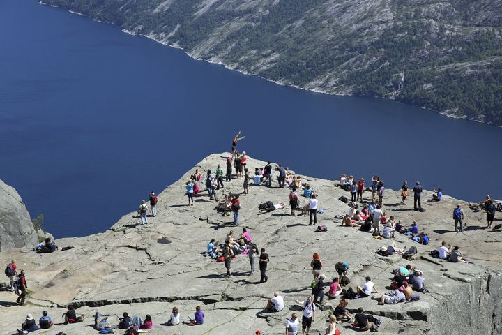 El famoso acantilado de Preikestolen es una de las mayores atracciones turísticas de los fiordos, un acantilado a más de 600 metros de altura que promete unas vistas impresionantes del lugar (aunque no apto para viajeros con vértigo).