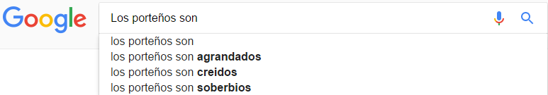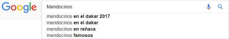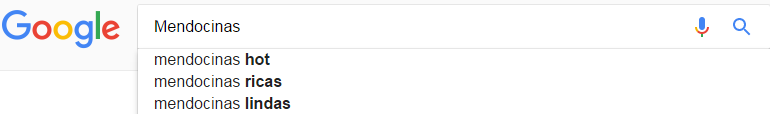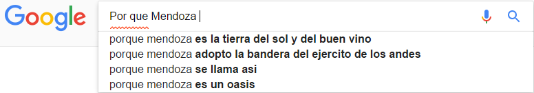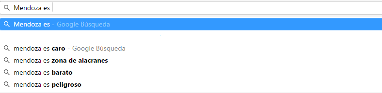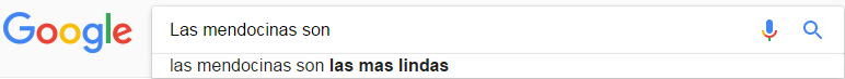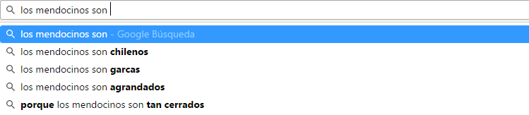 Si se empieza a escribir "los mendocinos son" en el buscador, Google actuará con su función "autocompletar" y mostrará las frases más comunes y asociadas a los mendocinos. Los resultados fueron los siguientes:
