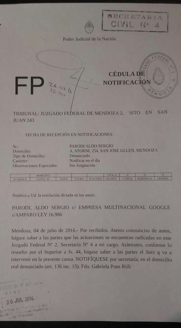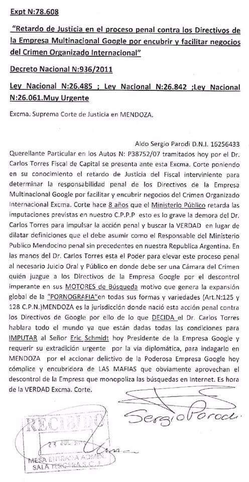 Te dejo un dato: sabías que Google tiene un acción de amparo en su contra presentada en Mendoza por el descontrol en los resultados de sus búsquedas. Se impuso para proteger a los niños y mujeres de los resultados que muestra de pornografía sin presentar filtro alguno.