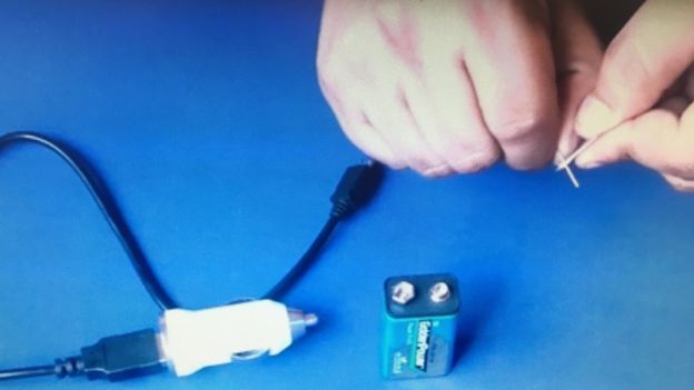 Cuando están pasando los electrones de un polo al otro, es el momento preciso para conectar el celular a través del USB.