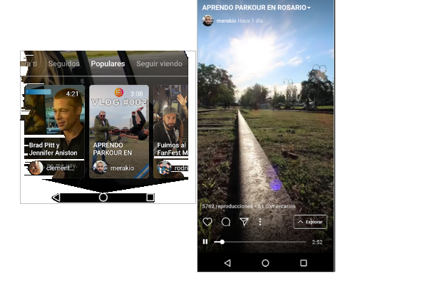 Si ya tenes una cuenta de Instagram, IGTV te mostrará contenido personalizado según tu cuenta. Cuando entrás, vas a poder ver cuatro menús: Para ti, que es contenido personalizado según tus gustos; Seguidos, para ver los videos de los canales que ya seguís en Instagram; Populares, para ver lo más reciente y lo más visto del momento y la opción Seguir Viendo, para continuar viendo un video que hayas dejado a medias.