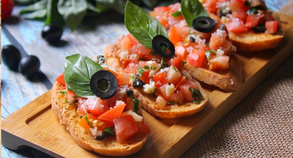 1. Disfruta de unas bruschettas caseras, pueden funcionar como almuerzo express o también puede ser una recepción. Puedes utilizar pan blanco o integral.