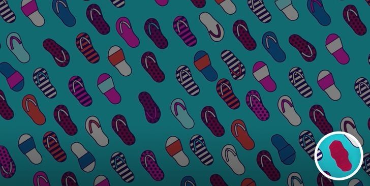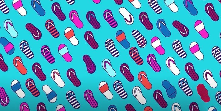 En esta colorida lámina se puede observar decenas de sandalias en un fondo turquesa. En este desafío visual deberán buscar un alimento camuflado en la imagen.