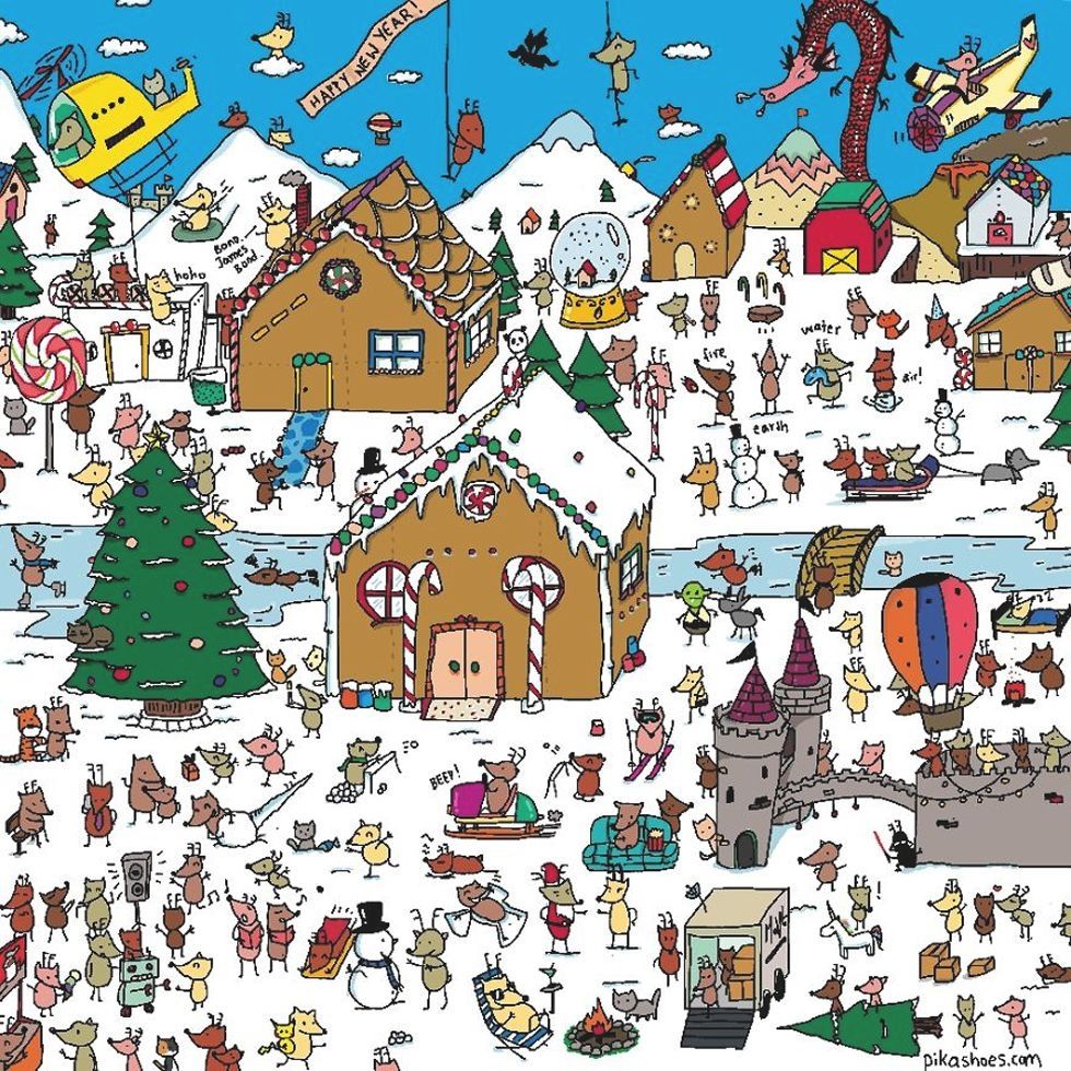 En esta lámina podemos observar decenas de distintos personajes ficticios uno al lado del otro. En este reto visual se encuentra un úrsido oculto.