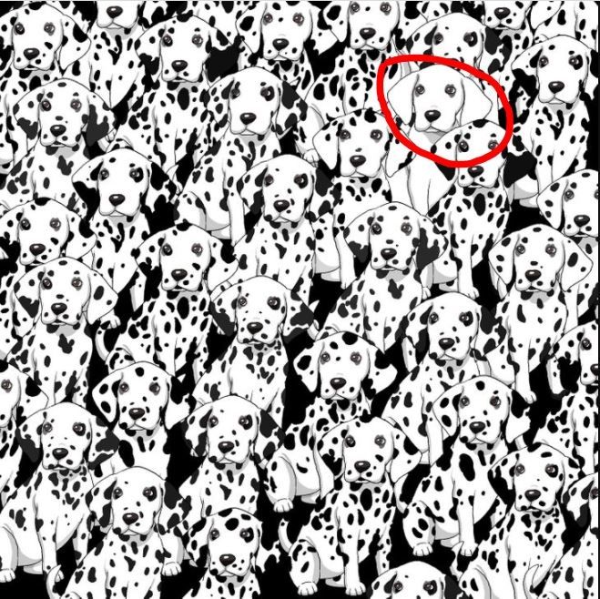 Acertijo visual: ¿Eres capaz de encontrar el perro sin machas oculto en la imagen?