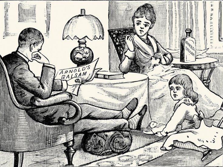 En la primera impresión de este reto visual se ve una simple imagen típica de principios de siglo XIX, con un padre leyendo el diario sentado en un sillón de un cuerpo, la madre a un costado cociendo y su pequeña hija jugando con las muñecas.