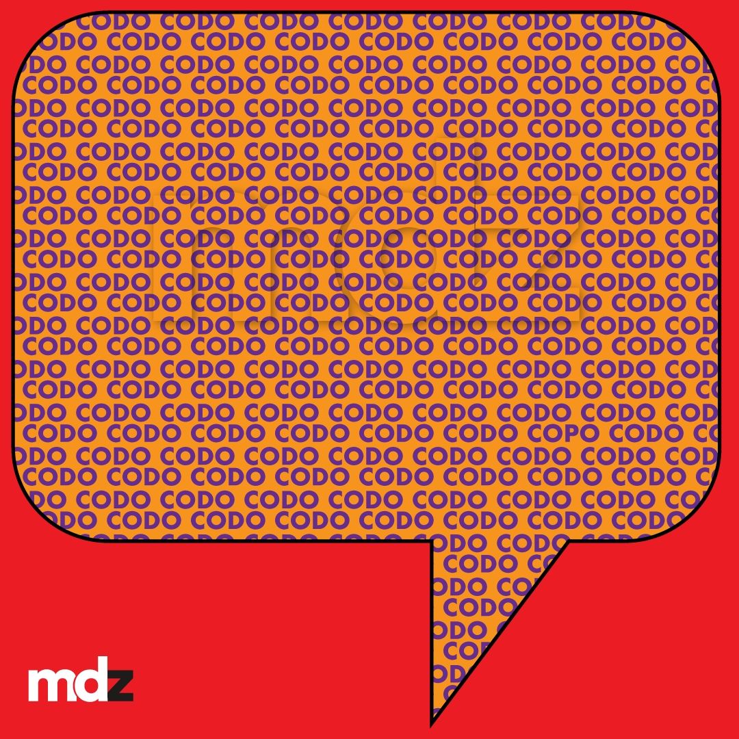 La imagen presentada muestra repeticiones de la palabra "CODO" en un llamativo tono violeta sobre un vibrante fondo naranja. A primera vista, todas las palabras parecen ser idénticas, pero una sutil diferencia distingue a una de ellas. Este es el corazón del desafío: detectar esa única variante que rompe el patrón.