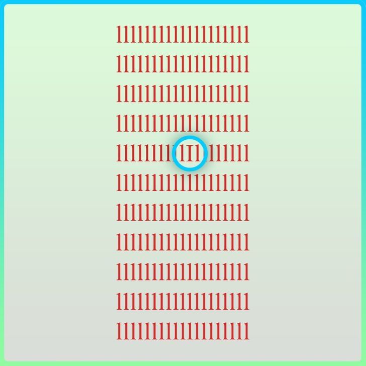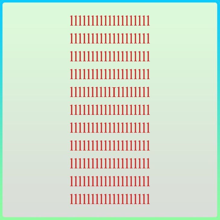 La imagen en cuestión está repleta de números uno de color rojo sobre un fondo claro, pero oculta en algún lugar de la lámina está la letra "I", que se mimetiza con el resto de los caracteres. El desafío consiste en localizarla antes de que se agote el límite de tiempo de 15 segundos, lo que ha hecho que este reto se viralice rápidamente entre jóvenes y adultos por igual.
