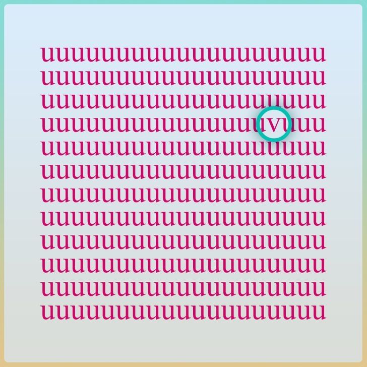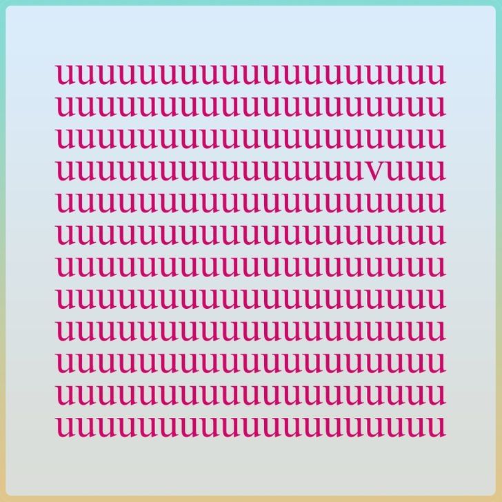 En los últimos años, los acertijos visuales han ganado popularidad en redes sociales, y este nuevo desafío no es la excepción. Se trata de un reto que pone a prueba la agudeza visual y la capacidad de percepción de quienes se animan a intentarlo. En esta lámina, repleta de letras U de color fucsia, se oculta una letra distinta, la V, que muchos encuentran difícil de detectar en un primer vistazo.