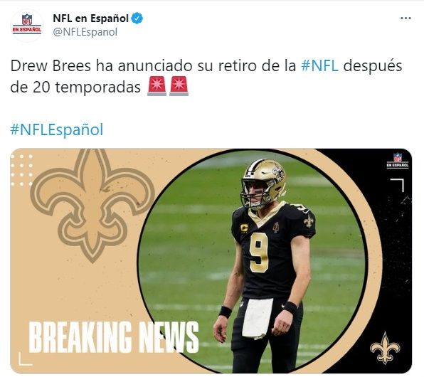 Aunque esperó hasta casi el comienzo del nuevo año de la liga, que ocurre oficialmente el próximo 17 de marzo, el retiro de Brees era esperado desde la eliminación de los Saints en la pasada postemporada. Brees pone fin a una exitosa carrera que incluyó múltiples récords y un título de Super Bowl.