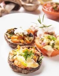 Rellena cada champiñón, colócalos en una bandeja de horno forrado con papel vegetal y hornea por 10 minutos a 200° C con calor arriba y abajo.