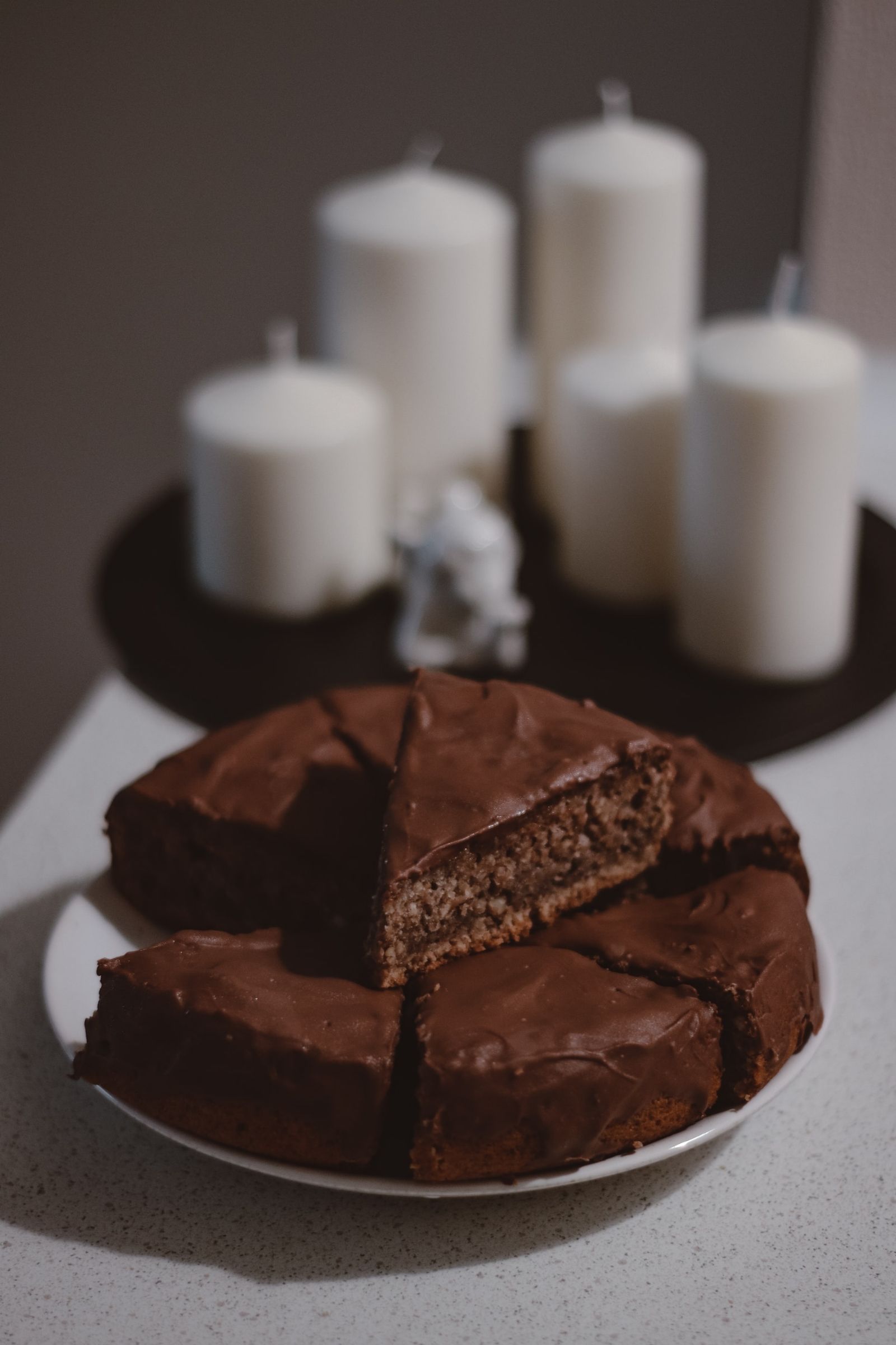 Vertemos sobre el biscocho frío y dejamos reposar hasta que la ganache adquiera cuerpo. Decoramos con pistacho molido por encima y ¡a comer!