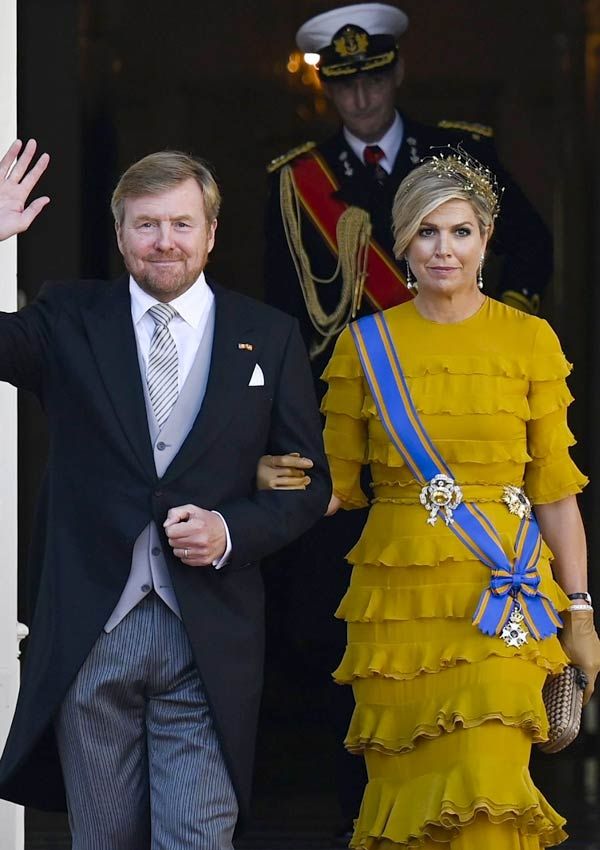 Amarillo y con volados: el hermoso vestido de gala que eligió la reina Máxima