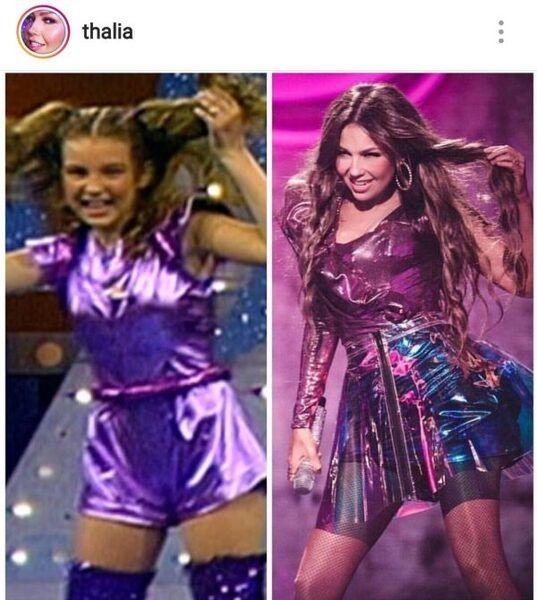 Hace unos años atrás la cantante mexicana compartió a través de su cuenta de Instagram una imagen en donde se podía ver a la Thalía de 14 años que recién empezaba y al lado la Thalía con el look que utilizó para los ‘Premios lo nuestro’ de ese año.