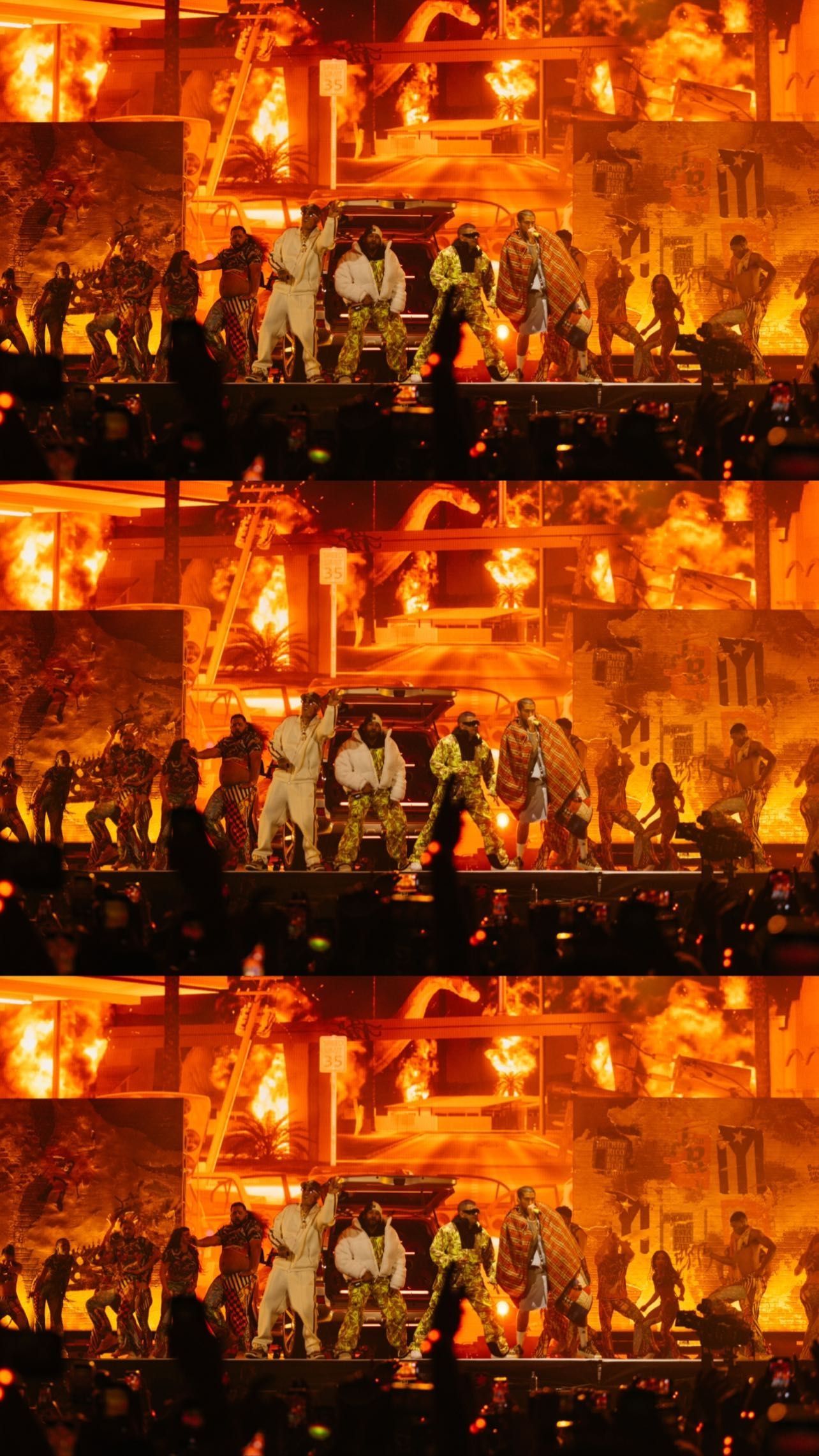 El músico se presentó en el escenario y demostró su talento para cantar y poner a bailar a decenas de miles de personas. Su performance manifestó una increíble versatilidad con uso de láseres, grandes coreografías, fuegos artificiales, una moto de agua y otros objetos reales. Asimismo, el juego de pantallas estuvo presente en la escena y se llevó la atención de muchos, a causa de un curioso detalle.