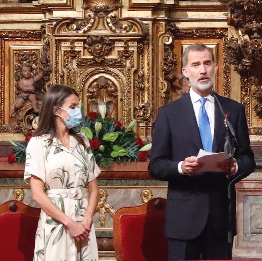 Este sábado la esposa del rey Felipe VI, lució un vestido floral midi del reconocido diseñador Pedro del Hierro con un cinturón que resaltó su cintura.