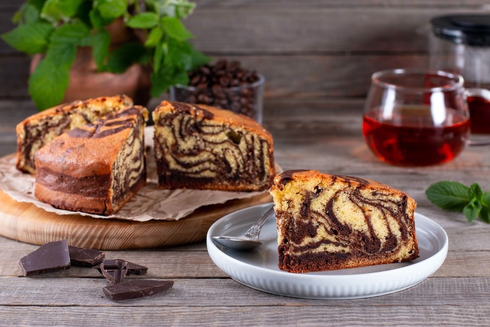 Sigue el paso a paso de esta receta de bizcocho marmolado de chocolate y vainilla y disfruta de una merienda deliciosa en pocos minutos.