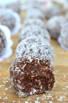 - Una vez integrado formar las bolitas y pasarlas por coco. Dejarlas en el freezer por 20 minutos. Se sirven semiblandos no congelados.