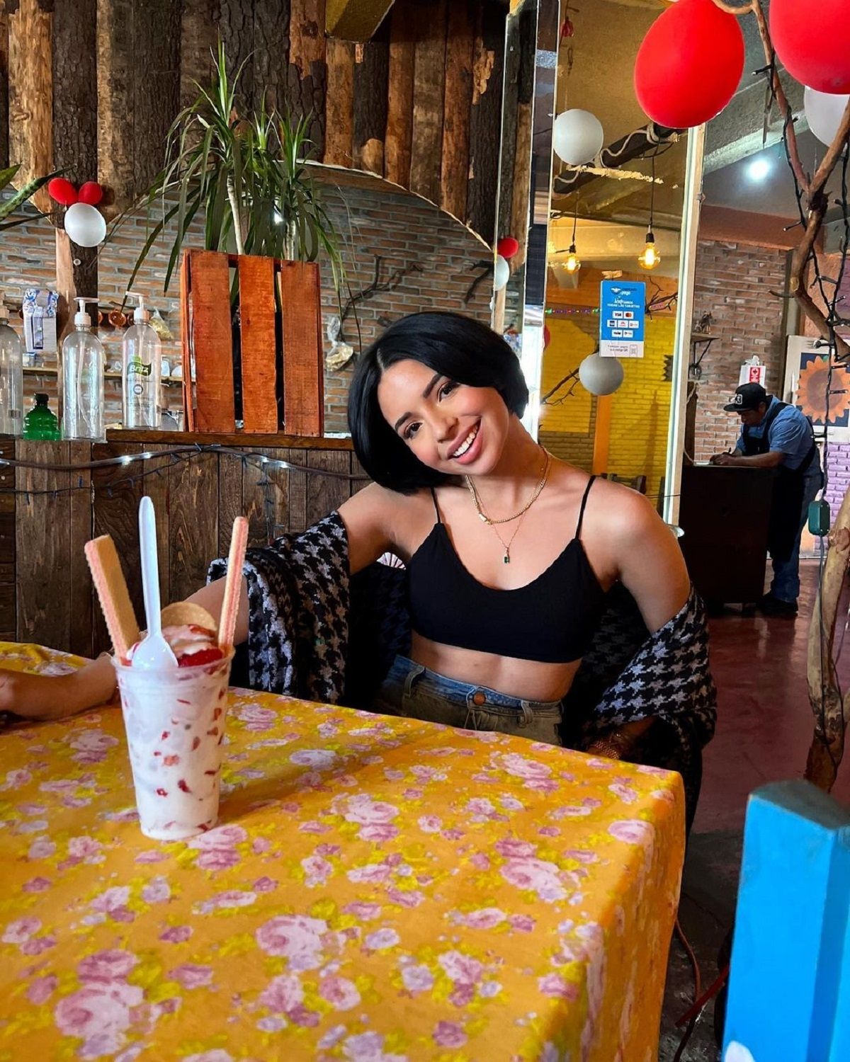 En las últimas horas, la hija del compositor de mariachi Pepe Aguilar y Aneliz Álvarez Alcalá, volvió a robar suspiros con un par de fotografías. Pues, Ángela marcó tendencia luciendo preciosa en un restaurante desconocido. Sentada mientras disfrutaba de una bebida helada, la intérprete de ‘Qué Agonía’ impactó con su outfit casual, que consistía en un top ajustado en color negro, unos jeans de tiro alto y una camisa a cuadros encima.