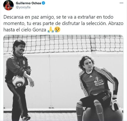 El primero en anunciar la triste noticia fue el portero Guillermo Ochoa. "Descansa en paz, amigo. Se te va a extrañar en todo momento. Tú eras parte de disfrutar la selección. Abrazo hasta el cielo, Gonza", escribió el hoy arquero del América en su publicación más reciente.