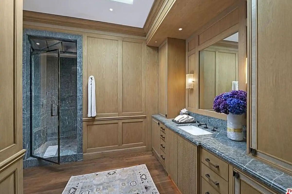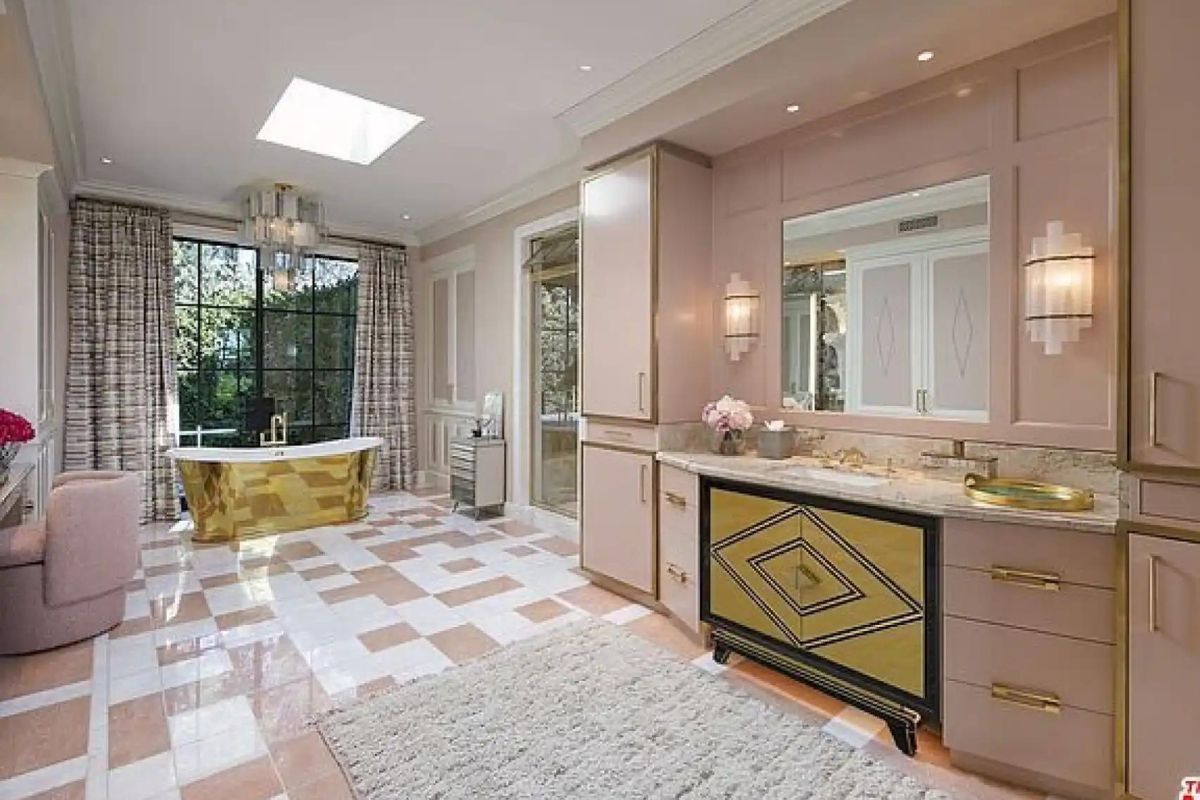 Todas las habitaciones de la mansión de Jennifer Lopez y Ben Affleck, disponen de baño en suite, y el principal presenta un ambiente en color rosado con gran amplitud y detalles totalmente exclusivos. Desde las baldosas bicolor, hasta el gran mueble lacado en tono pastel o su enorme ventanal con vistas al jardín, cada rincón del baño invita a la calma. Pero sin duda la reina de la estancia es la bañera de oro desde la que se observa el exterior mientras cualquiera de sus inquilinos toma un baño relajante.