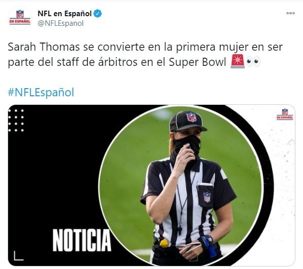 "Sarah Thomas ha hecho historia de nuevo como la primera mujer oficial del Super Bowl", expresó con alegría el vicepresidente de operaciones de la National Football League, Troy Vincent. "Su rendimiento de élite y su compromiso con la excelencia le han ganado el derecho a arbitrar el Super Bowl", agregó el directivo.