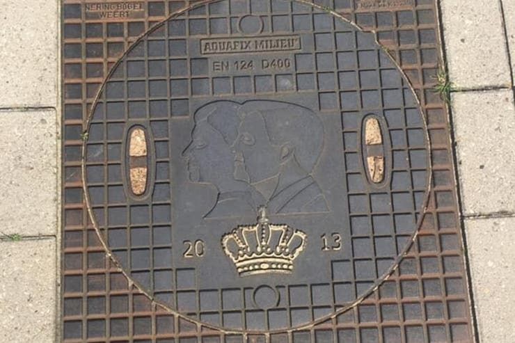 Los reyes de los Países Bajos recibieron una cubierta para una cloaca grabada con el perfil de sus rostros. La tapa es de hierro fundido y tiene la imagen de las caras de los reyes en relieve. A su vez, se puede ver una corona y una referencia al año 2013, cuando la pareja fue coronada en el trono holandés.