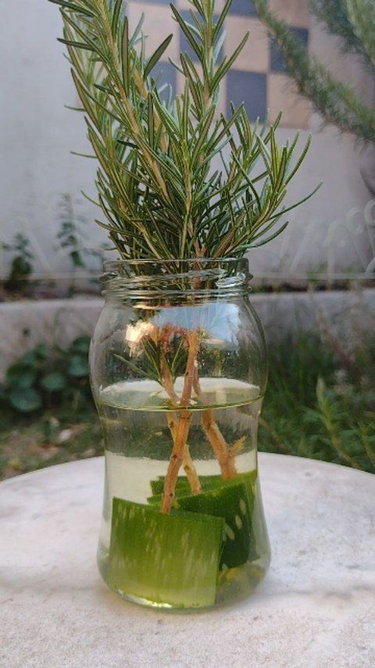 El romero requiere un poco más de tiempo. Se corta una rama joven y se coloca en agua sin sol directo. Las raíces tardan, pero el resultado compensa. Aporta aroma y sirve para muchas recetas.
