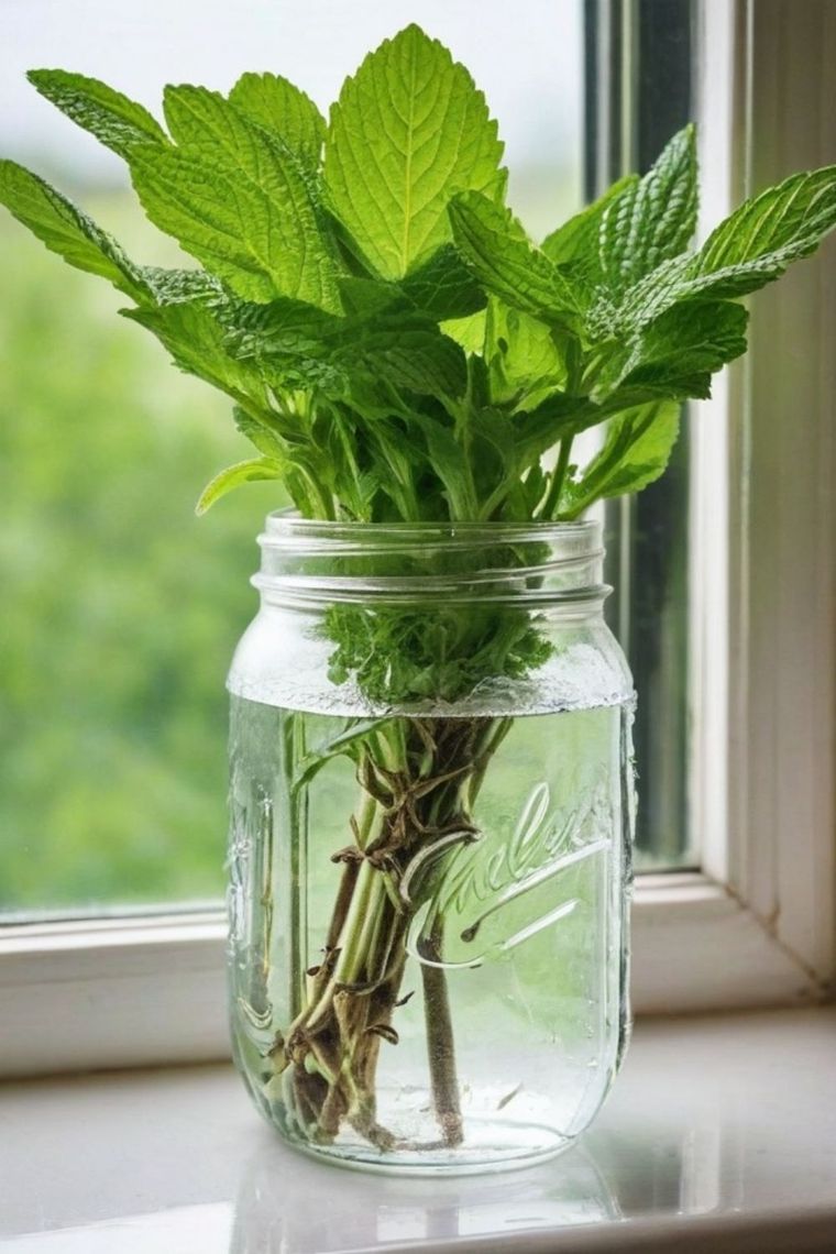 La menta da resultados rápidos. Se toma un tallo fresco y se coloca en un vaso con agua limpia. En una semana ya hay raíces visibles. Luego se mantiene en la cocina y se usa en bebidas o comidas.