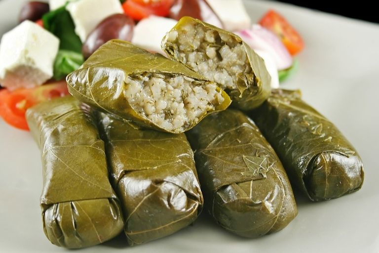 Los dolmades son una receta tradicional griega que consiste en hojas de parra rellenas de arroz y hierbas aromáticas. Es un plato muy popular en la gastronomía griega y se suele servir como aperitivo o como plato principal acompañado de una ensalada.
