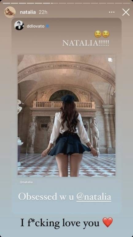 La reconocida artista Demi Lovato comentó el posteo de la ex pareja de Maluma de la siguiente manera: “Ay Dios mío”. Pero esto no quedó ahí la intérprete de “Échame la culpa” subió en sus historias de Instagram el post de la morocha junto al mensaje “@natalia estoy obsesionada contigo”