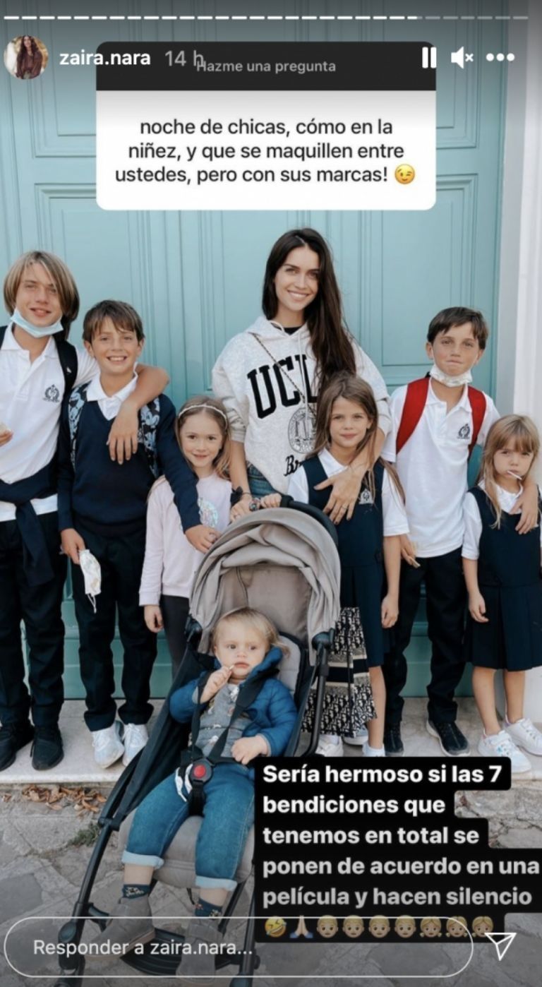 "Sería hermoso si las siete bendiciones que tenemos en total se ponen de acuerdo para ver una película y hacen silencio" indicó Zaira en una historia de Instagram.