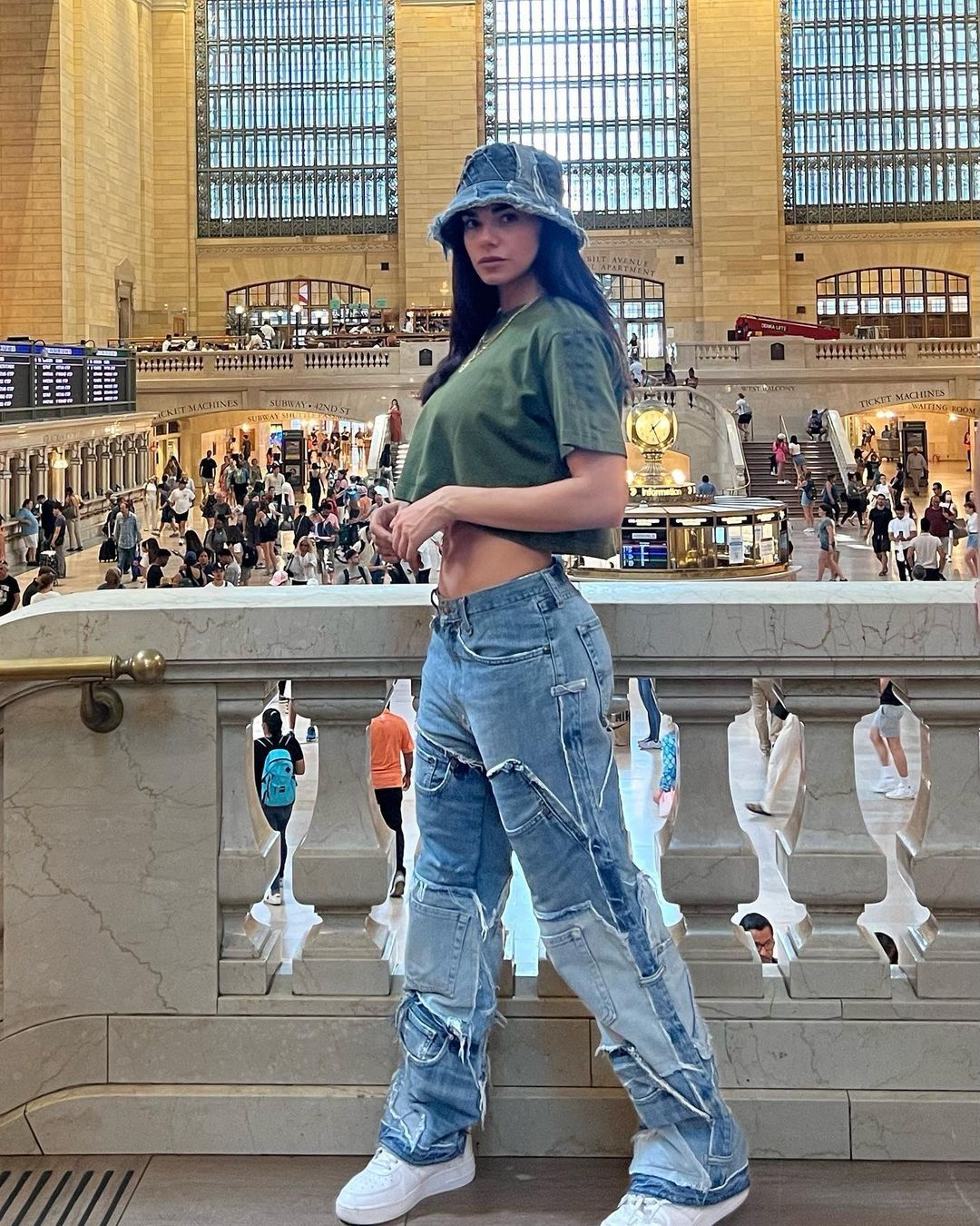 Esta vez, Livia eligió varios atuendos cómodos y cancheros para recorrer las calles de Nueva York. La actriz vistió una serie de looks urbanos con materiales denim, en tonos azules y grises, para agregar un toque especial lo combinó con diferentes crop tops, unos gorros de mezclilla con detalles coloridos y unas zapatillas prácticas para caminar largas distancias. Al parecer, la actriz sabe como llevar looks para disfrutar en sus viajes sin dejar de lado la comodidad.