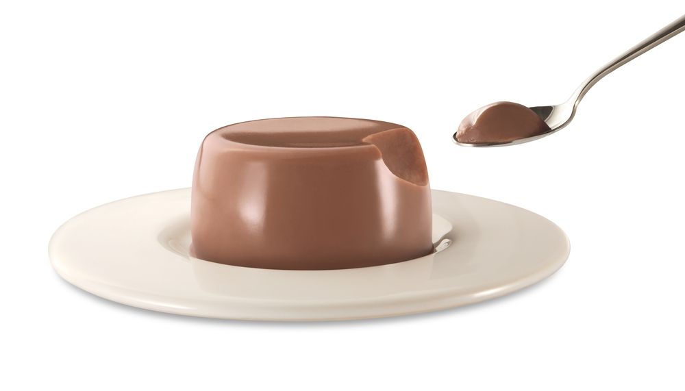 - Vierte la mezcla de flan de chocolate sobre el caramelo endurecido en el molde para flan.