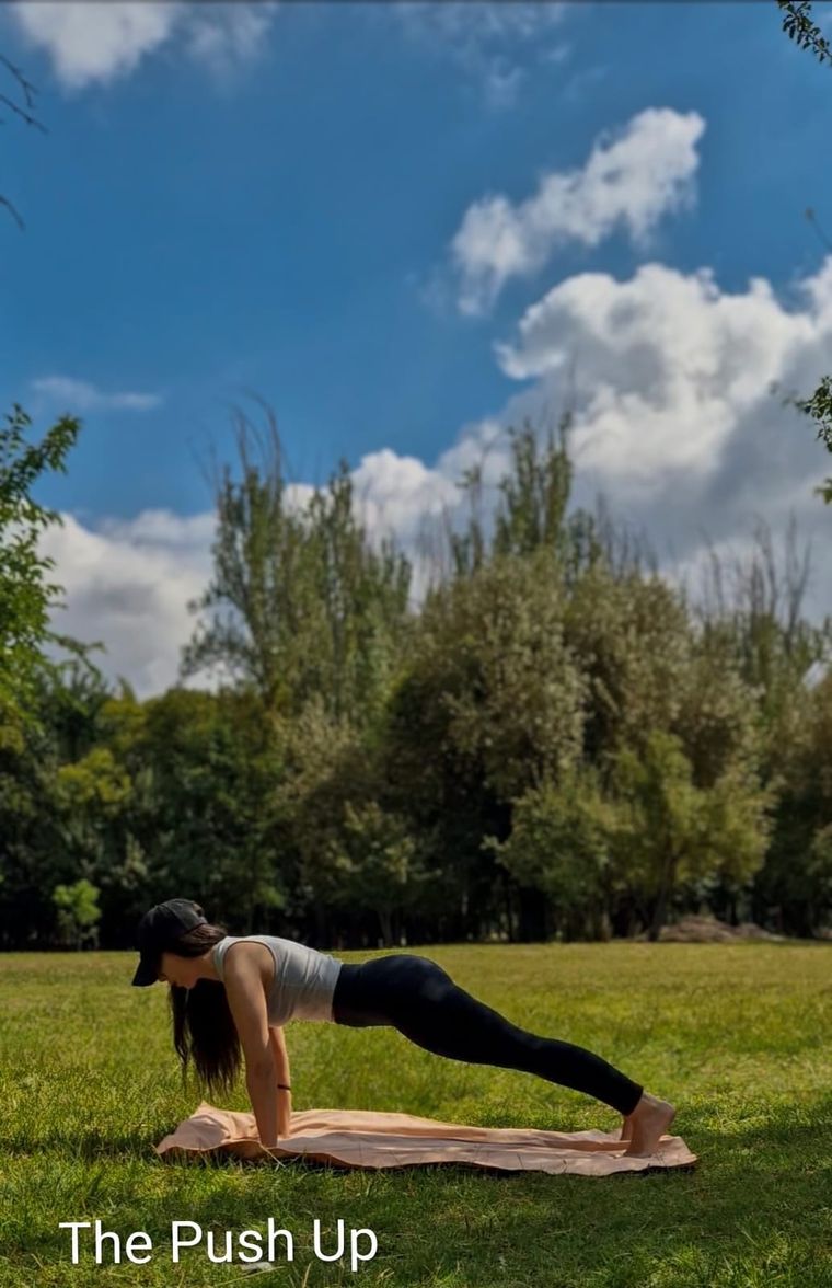 El cuarto ejercicio es la plancha modificada: desde cuatro apoyos se extiende el cuerpo apoyando manos y rodillas, buscando una línea estable desde la cabeza hasta la pelvis. Se sostiene entre veinte y treinta segundos; si el centro ya está fuerte, puede intentarse la versión completa sobre manos y pies. “Imaginá que alguien tira de tu coronilla hacia adelante y de tus talones hacia atrás: esa sensación de alargue evita que la postura se hunda”, describió.
