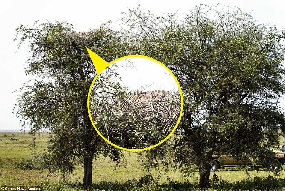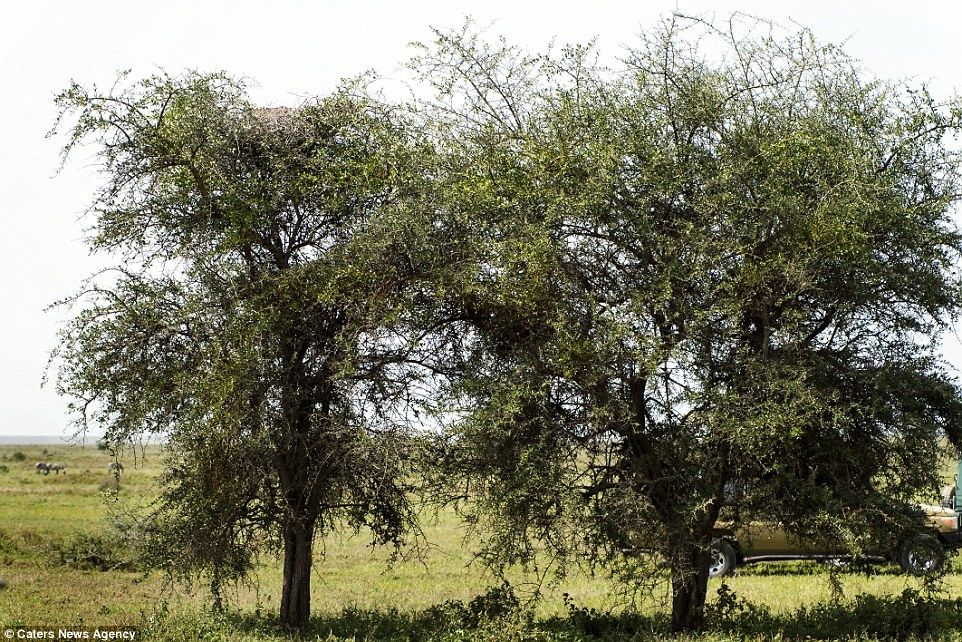 En esta fotografía captada por Julia Sundukova en plena sabana africana de Ndutu, se puede observar dos frondosos árboles en el medio de la naturaleza de Tanzania. En este nuevo reto visual se encuentra un animal infiltrado, el cual es difícil de encontrar en una primera instancia.