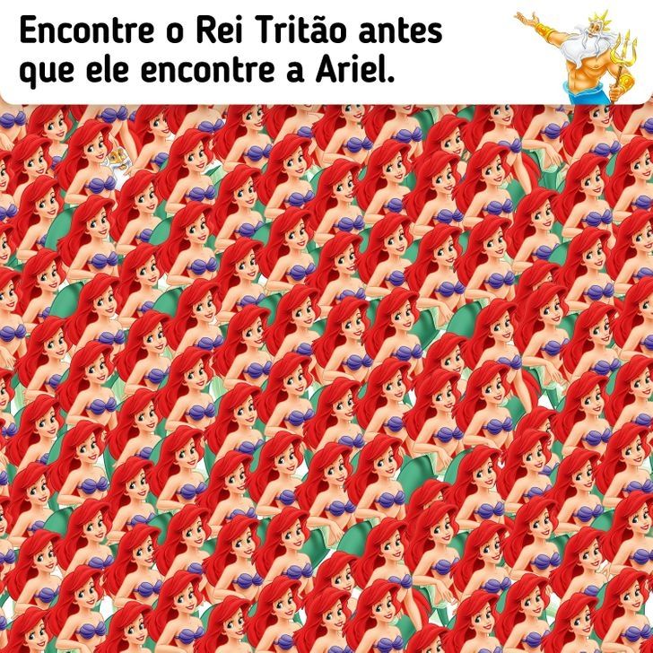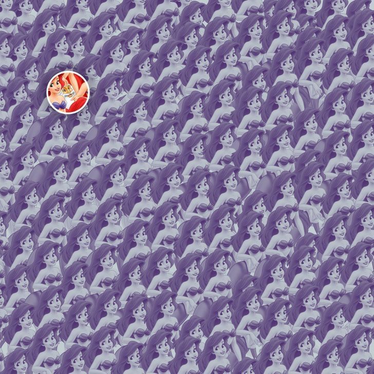 En este simple y colorido dibujo, se puede observar decenas de princesas Ariel, personaje principal de “La Sirenita”, una al lado de la otra. En este nuevo reto visual se encuentra un personaje infiltrado, el cual es difícil de encontrar en una primera instancia.