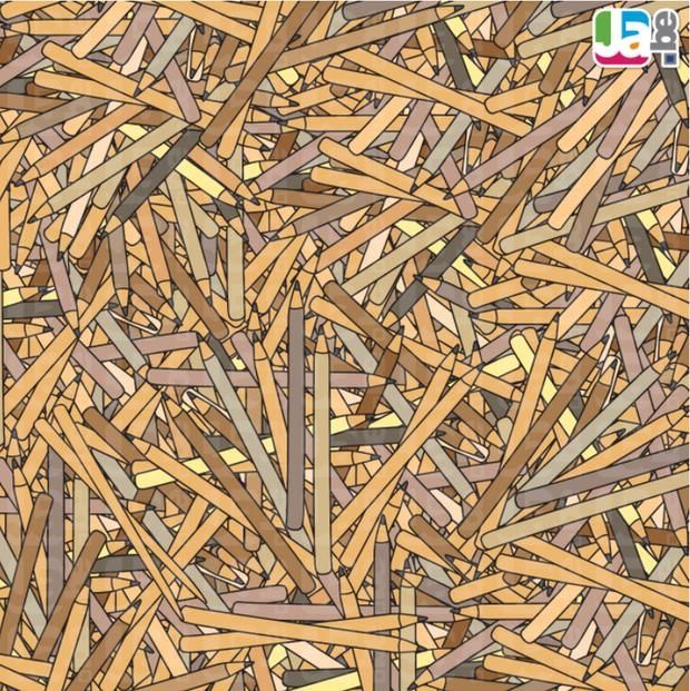 En este simple y colorido dibujo, perteneciente al sitio Jade, se puede observar decenas de lápices uno al lado del otro. En este nuevo reto visual se encuentra un utensilio infiltrado, el cual es difícil de encontrar en una primera instancia.