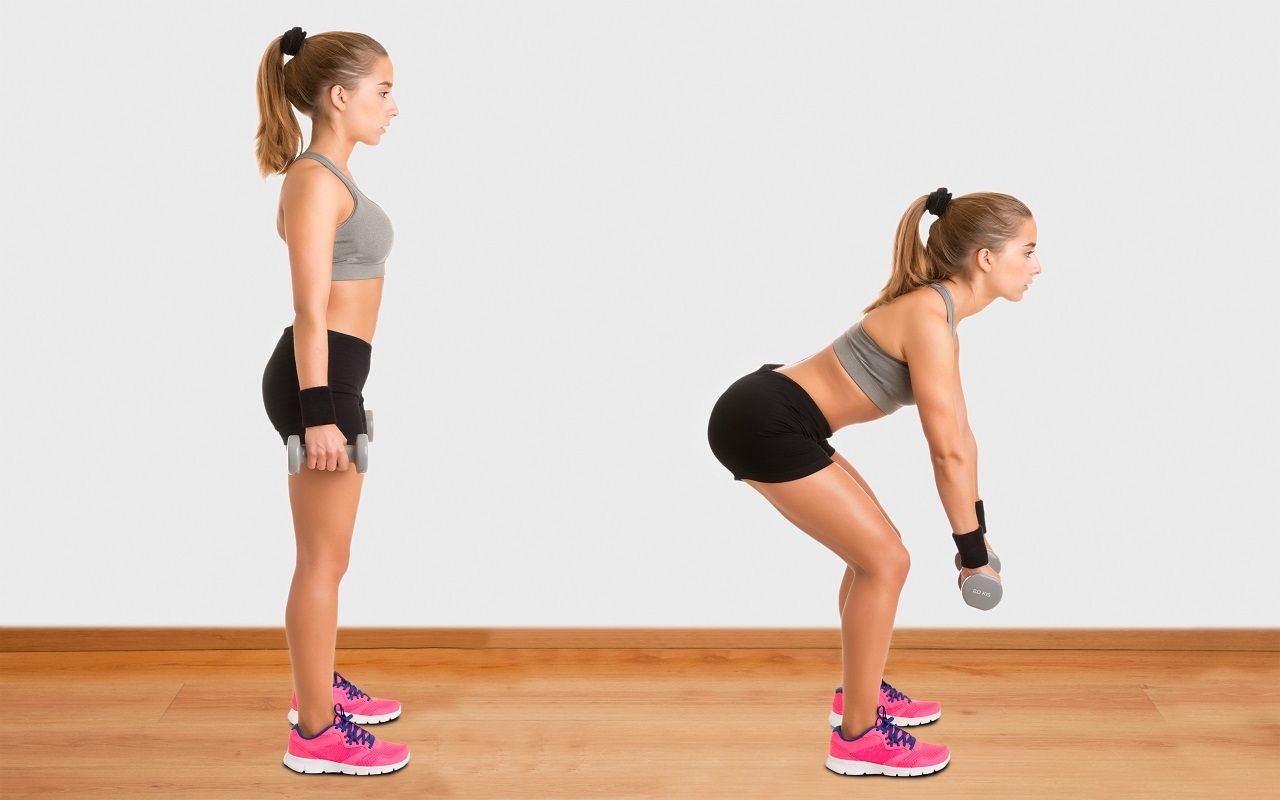 1. Peso muerto: El sitio Mejor con Salud explica que la técnica consiste en colocarse de pie, con las piernas separadas a la anchura de los hombros, y con las rodillas un poco flexionadas. Luego debes inclinar el tronco hacia adelante, manteniendo recta la espalda. Así tomas las mancuernas y las elevas con tu cuerpo, tras inclinar por completo la cadera hasta alcanzar la posición posición inicial.