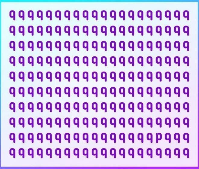 Los acertijos visuales se han convertido en una tendencia viral en Internet, capturando la atención de personas de todas las edades. Estos desafíos ofrecen una forma entretenida de poner a prueba las habilidades de observación y percepción, convirtiéndose en un fenómeno en las redes sociales. El último reto que circula online presenta una imagen repleta de letras Q de color violeta sobre un fondo celeste, entre las cuales se esconde una solitaria letra P. Detectar esta diferencia no es tarea fácil, lo que convierte al desafío en una prueba intrigante para quienes se animan a participar.