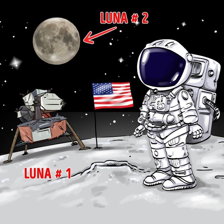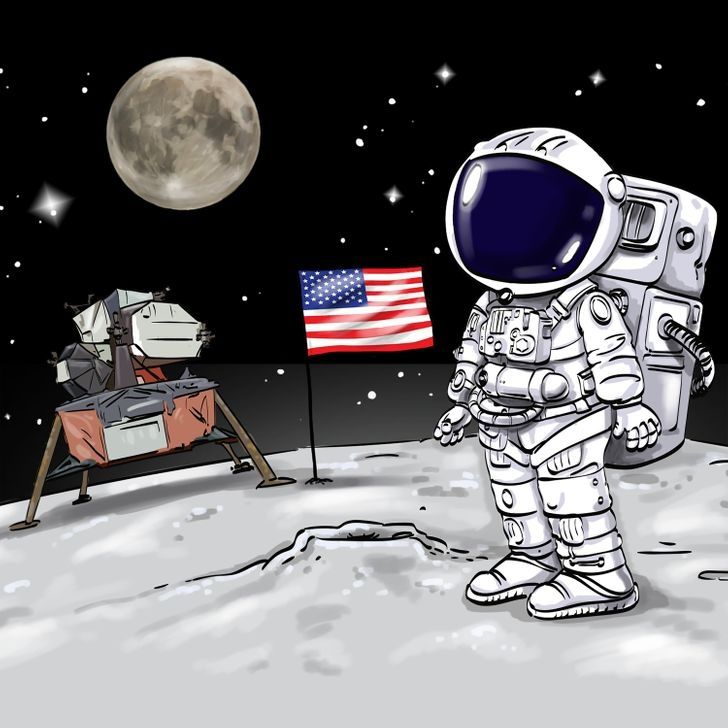 En esta mencionada lámina se puede observar una caricatura de un astronauta pisando la luna en el espacio. En este nuevo reto visual posee una anomalía que es difícil de encontrar en una primera instancia.