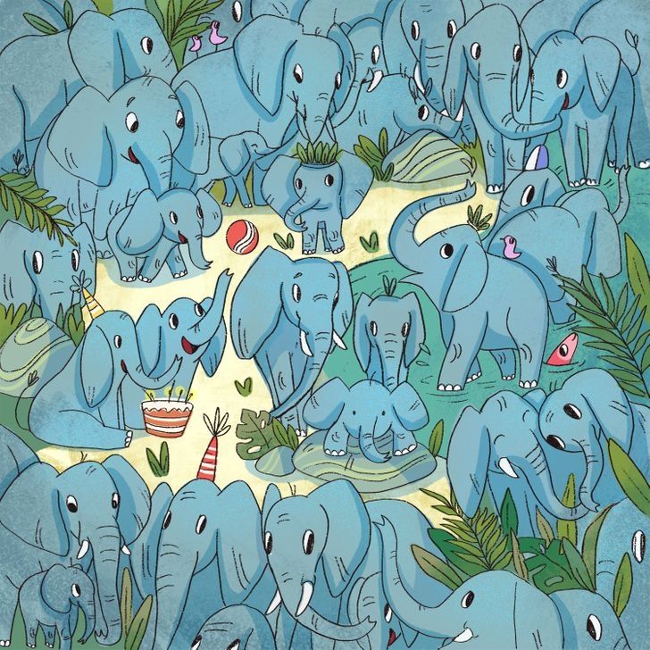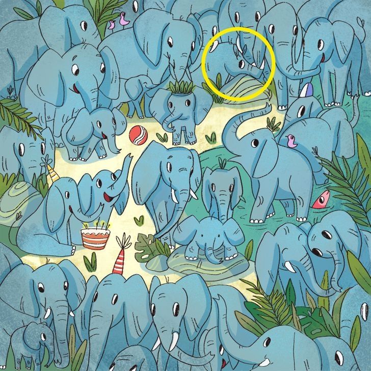 En este simple y colorido dibujo, se puede observar cientos de decenas de elefantes, uno al lado del otro. En este nuevo reto visual se encuentra un animal distinto infiltrado, el cual es difícil de encontrar en una primera instancia.