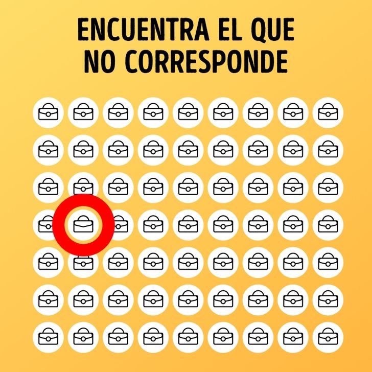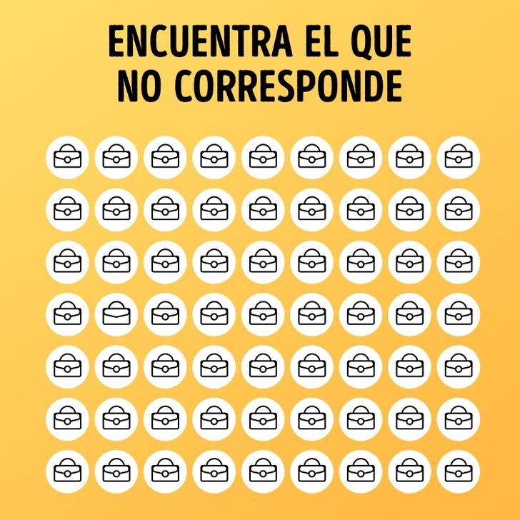 Los fanáticos de este juego tendrán como principal objetivo descifrar cual es la única cartera que no es igual al resto que aparecen en la filmina. Para esto, aquellos valientes que se animen a este desafío visual tendrán que poner en juego sus capacidades cognitiva. Los juegos son una parte integral de todas las culturas y es una de las formas más viejas de interacción social humana. Los juegos formalizaron expresiones de las cuales dejaron para ir más allá de la imaginación inmediata y actividad física directa.