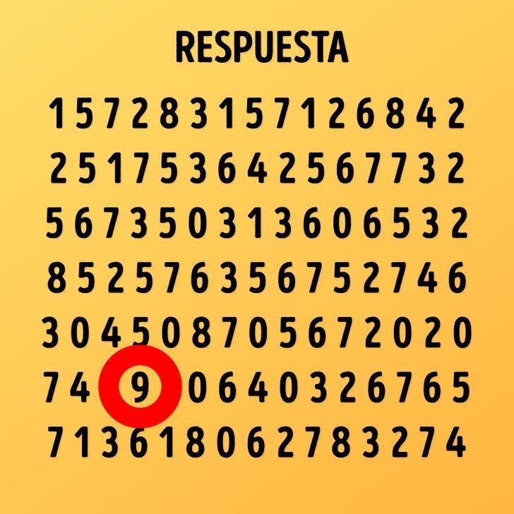 A continuación, está la solución de este reto visual que puso a varios jóvenes y adultos a trabajar la capacidad de sus ojos. El solitario número nueve se encuentra en la parte inferior izquierda de la imagen.