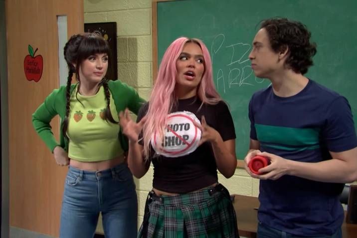 Al final del programa, las celebridades se encargaron de armar un sketch muy divertido, así que organizaron una clase de español y fueron las profesoras de una escuela pues ambas tienen al inglés como segunda lengua pero lo hablan a a perfección. De hecho, en ese momento Ana de Armas estaba a punto de recibir la ciudadanía estadounidense, así que lo festejó hablando fluidamente como una traductora del inglés al español para sus compañeros de 'clase'.