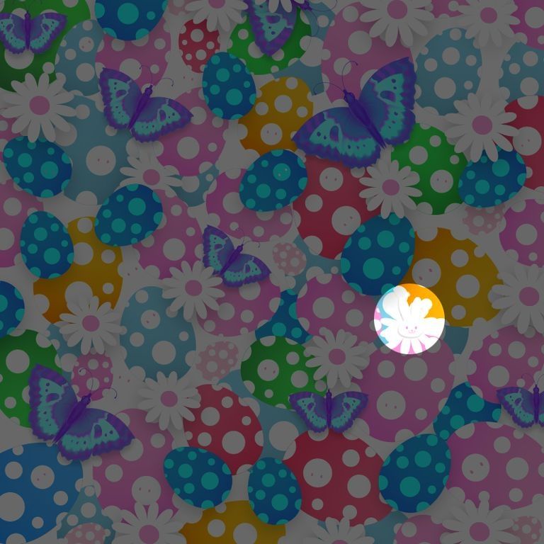 En este sencillo y colorido dibujo se puede observar decenas de mariposas, flores y huevos de pascuas, sobre un fondo blanco. En este nuevo reto visual se encuentra un animal infiltrado que es difícil de encontrar en una primera instancia.